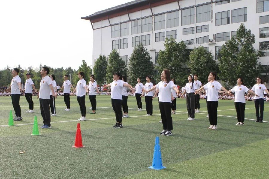 除了孩子們,我(wǒ)(wǒ)們的老師也加入了此次的比賽。看,那一(yī)個個英姿飒爽的身影;看,那一(yī)個個接近完美的動作。老師們全神貫注,與音樂融為一(yī)體(tǐ),用每一(yī)個動作去(qù)彰顯着什麼是榜樣,什麼是支柱。