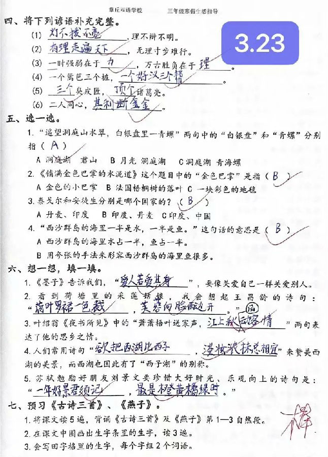 假前的老師們将一(yī)份份精心設計的特色“雙減”作業安排給了學生(shēng),旨在帶給學生(shēng)一(yī)個豐富多彩、意義非凡的假期;歸來的雙語學子将這樣一(yī)份份精彩紛呈的答卷交還給老師,展示了“雙減”的魅力與成長的印迹。為此,各位老師對學生(shēng)的假期作業進行了針對性的批閱和點評,既豐富多彩又(yòu)恰到好處,最大(dà)限度的發揮了寒假作業的有效性。