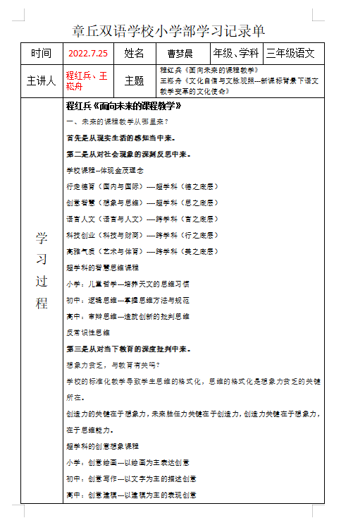 從程老師《面向未來的課程教學》中(zhōng)體(tǐ)會到課程對于一(yī)所學校的重要性不言而喻。