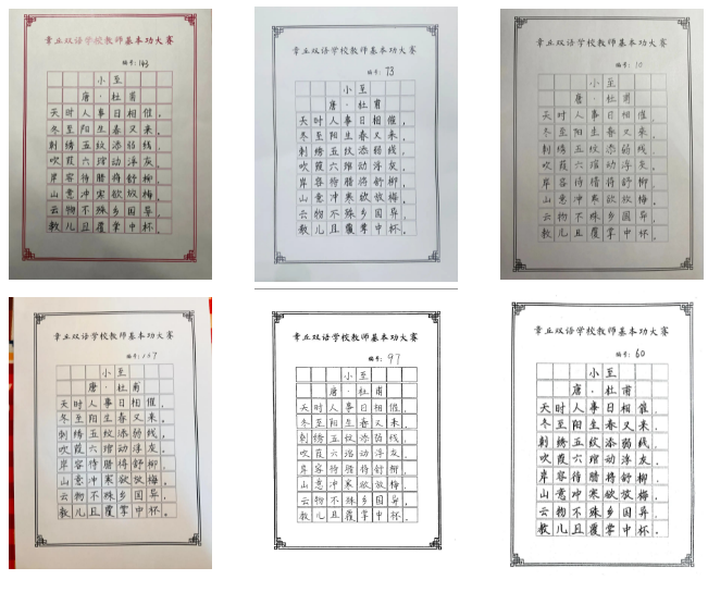 鋼筆字是一(yī)名合格教師所必須掌握的通用技能之一(yī),也是教師必備的教學基本功之一(yī)。參賽教師紛紛拿出看家本領,把自己教學的基本技能和對工(gōng)作的熱愛融入筆端,用心、用情地完成參賽作品。