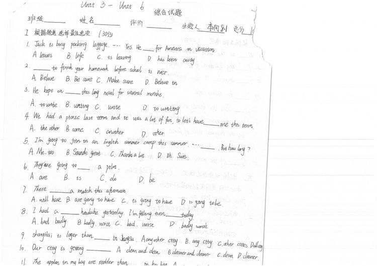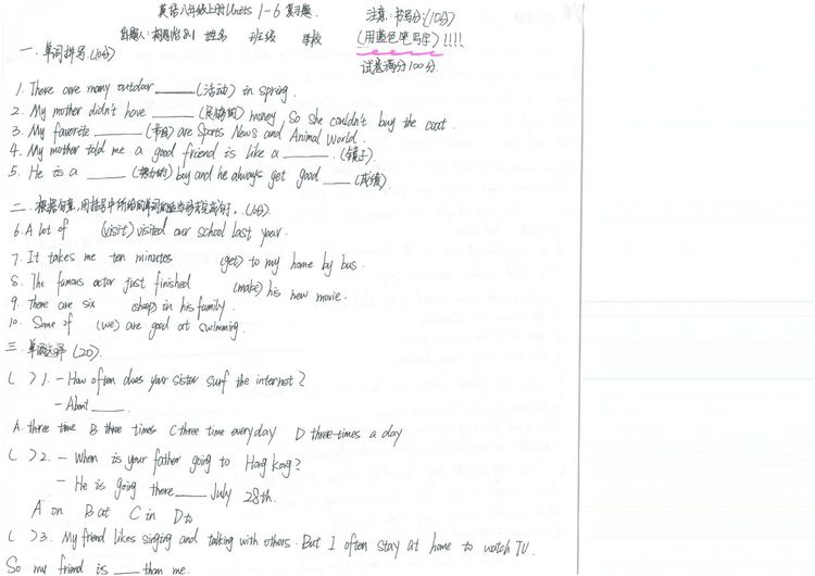 發布時間:2017-11-06八年級一(yī)、三班英語優秀作業展