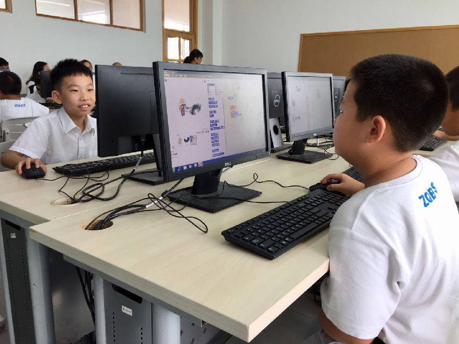 信息王夢瑤老師給大(dà)家帶來了一(yī)節二年級的《Scratch啟蒙》。通過有梯度的課堂教學内容設計,化抽象為具體(tǐ)的生(shēng)動語言解釋,使學生(shēng)輕松理解了編程等複雜(zá)專業術語,課上,王老師步步引導之餘,最大(dà)限度的實現了學生(shēng)主體(tǐ),充分(fēn)調動了學生(shēng)的積極性,激發了學生(shēng)對編程軟件scratch的興趣,初步開(kāi)始培養學生(shēng)的邏輯思維能力與理解能力。