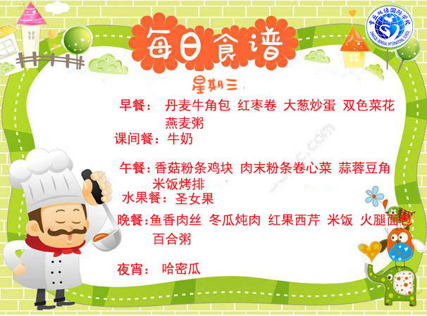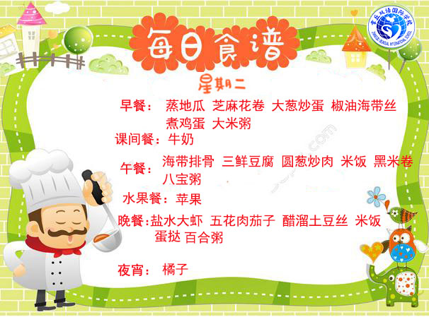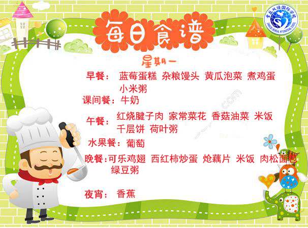 達州巨全雙語學校食堂2018.10.8-10.14食譜
