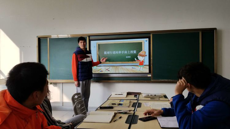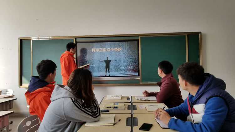 首先是王孟老師進行說課。王老師的說課題目是“排球正面雙手墊球”,他分(fēn)别在指導思想、教材分(fēn)析、學情分(fēn)析、教學目标、教學重難點、教法與學法、教學過程、預計課的效果以及場地器材進行了說課。王老師着重的強調了教學目标、教學重難點以及教學過程,他在教學過程中(zhōng)說,要想使學生(shēng)享受體(tǐ)育鍛煉帶來的快樂,要在教學中(zhōng)激發學生(shēng)對體(tǐ)育運動的興趣,體(tǐ)現學生(shēng)的主體(tǐ)地位,關注學生(shēng)的個體(tǐ)差異。