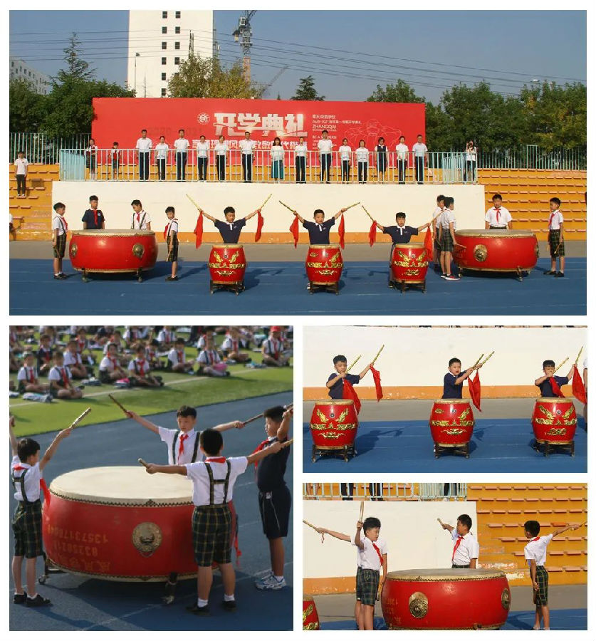 擊鼓傳志(zhì)為我(wǒ)(wǒ)們開(kāi)啟新篇章!第一(yī)鼓:一(yī)鼓作氣,揚帆雙語。第二鼓:鼓舞士氣,再接再厲。第三鼓:鼓足幹勁,平步青雲。知(zhī)禮儀,明事理,尊長輩,勤學文。雙語學子,鬥志(zhì)昂揚;勤奮博學,進取争先。臨秋風,披錦繡,流清韻,響心房。鼓聲陣陣,傳向四方;吾輩少年,志(zhì)在遠方!