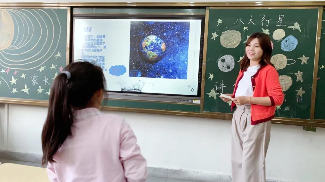 這一(yī)節我(wǒ)(wǒ)們共同認識了華麗的土星,蔚藍(lán)色的地球,暖橙色的火(huǒ)星,海藍(lán)色的水星……神秘的宇宙生(shēng)動地展現在同學們眼前,引起無限遐想。