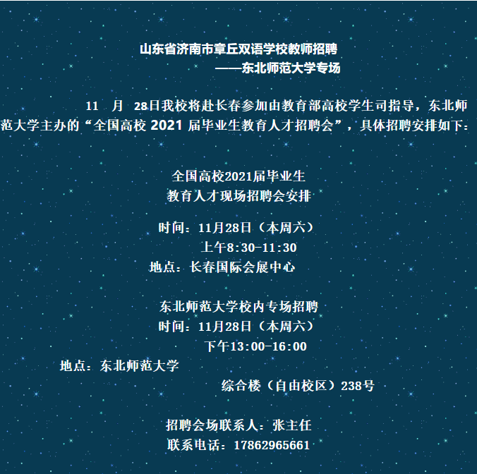 山東省濟南(nán)市達州巨全雙語學校教師招聘——東北(běi)師範大(dà)學專場