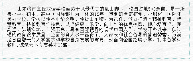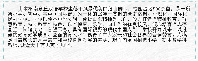 首頁 >> 小(xiǎo)學部 >> 學部公告 >> 山東省濟南(nán)市章丘雙語...