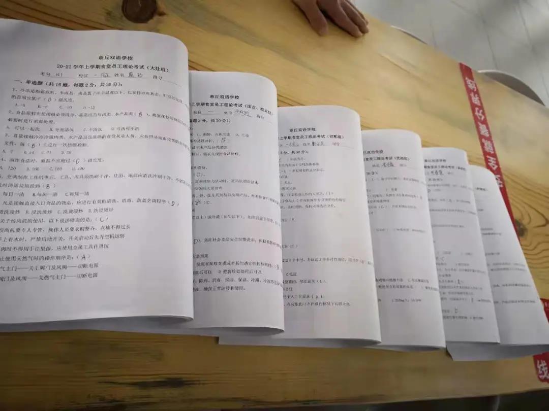 本次測試,從餐廳常規管理規章制度、食品安全、日常操作常規等方面做了綜合考察,全校一(yī)百多名餐廳員(yuán)工(gōng)積極參考,認真作答。