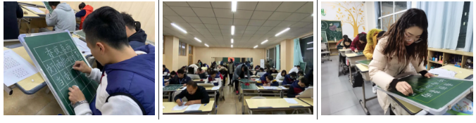 結束了一(yī)天的忙碌後,雙語教師們意氣風發、充滿自信地走進一(yī)個個教室,參加此次教師基本功大(dà)賽。晚上的寒風更多了幾分(fēn)清冷徹骨,但這絲毫不能減退雙語教師對待教育的萬丈激情與熱忱。從抽簽取号、領取内容,到沉着書(shū)寫、精彩發揮,一(yī)項一(yī)項活動井然有序地進行着,早已展示出雙語教師的無限風采。