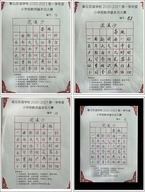 為進一(yī)步打造雙語墨香校園,提高教師專業素養,促進教師專業化成長,培養教師“寫規範字,寫漂亮字”的良好習慣,更好地向學生(shēng)發揮榜樣、示範作用,我(wǒ)(wǒ)校小(xiǎo)學部于1月6日晚特舉辦小(xiǎo)學部教師基本功大(dà)賽。