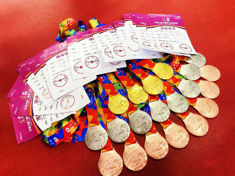 2021濟南(nán)市第八屆青少年擊劍比賽獲得個人團體(tǐ):男子佩劍乙組冠亞季軍、女子乙組季軍、花劍男子乙組:冠軍和季軍、花劍女子乙組亞軍和季軍、花劍男子甲組季軍、花劍女子甲組亞軍、男重乙組團體(tǐ)季軍、七名學員(yuán)獲得前八;