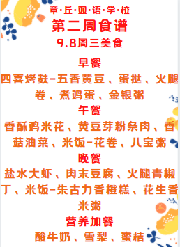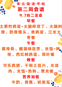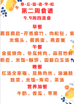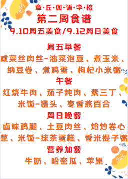 達州巨全雙語學校第二周食譜