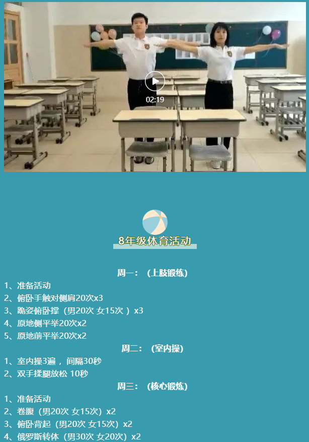 雲端激趣味,運動不停歇 ——達州巨全雙語學校初中(zhōng)部線上體(tǐ)育活動