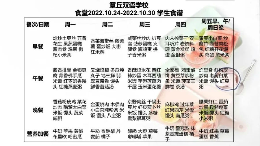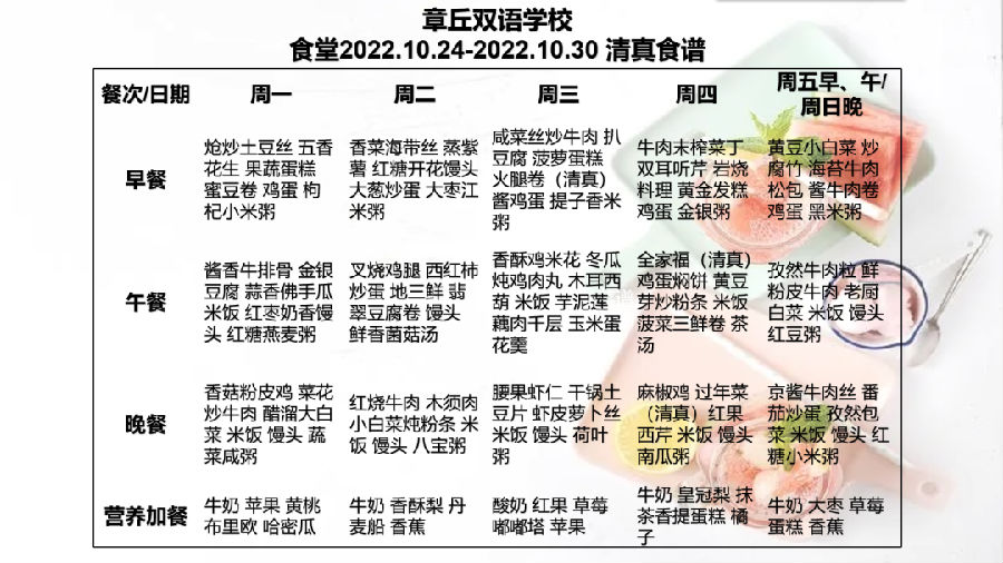 達州巨全雙語學校食譜2022.10.24-2022.10.30