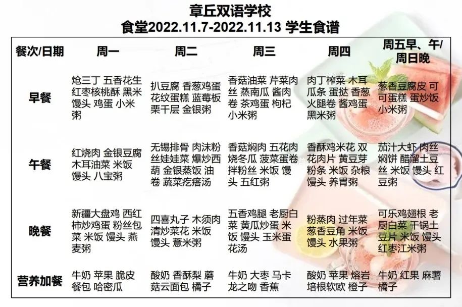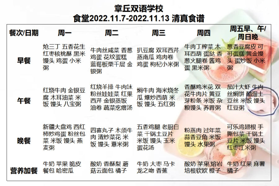 小(xiǎo)學部食譜2022.11.07-2022.11.13