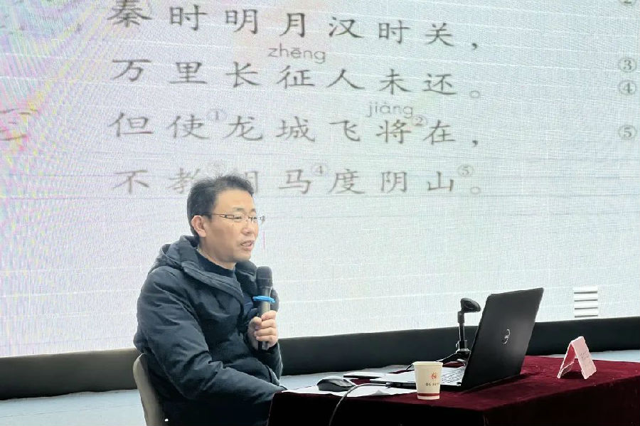 潘教授從語文核心素養的闡述、語文教學的基本理念、語文教學設計創新和語文教學課例分(fēn)析四個方面,深入淺出地為老師們進行了新課标的解讀與分(fēn)析。在講解中(zhōng),潘教授輔以《墨梅》、《蘇州園林》、《出塞》等經典課例的授課經曆,為老師們分(fēn)享了新課标與教育實踐的融合,展現了創意教學帶來的活力課堂。匠心巧思的教學設計讓老師們眼前一(yī)亮,創新的教學理念給老師們帶來了教學設計上的新思路,精彩絕倫的講座讓老師們享受了一(yī)場語文教學的視聽(tīng)盛宴。