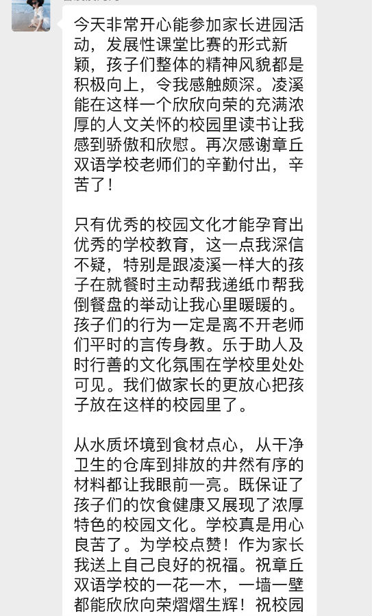 “家長進校園”活動不僅為學校、家庭、社會構建起溝通的橋梁,為家長全面展示了我(wǒ)(wǒ)校的辦學特色、校園建設以及師生(shēng)員(yuán)工(gōng)良好的精神風貌,展現了和諧育人的氛圍,提升了學校的社會影響力。而且,從家長走進校園,參與到各項活動之中(zhōng),并提出寶貴意見那一(yī)刻起,大(dà)家就為積極配合學校完成育人工(gōng)作作出了巨大(dà)貢獻。因為共同關注每一(yī)個孩子的健康成長,既是校園的使命,也是家庭的責任!