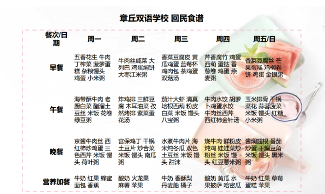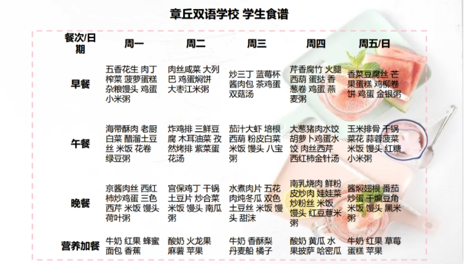 達州巨全雙語學校食譜2023.9.11-2023.9.17