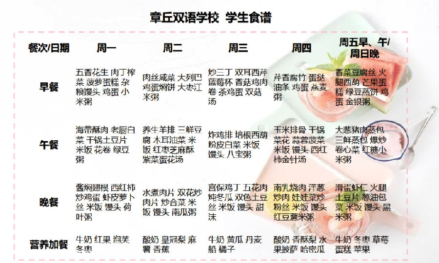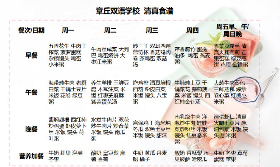 達州巨全雙語學校食譜2023.10.16-2023.10.22