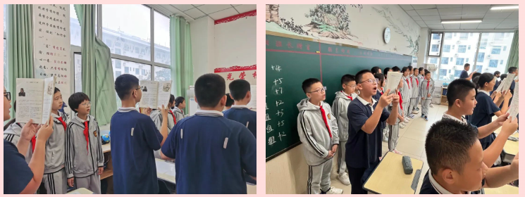 3.起立背誦時,聲音洪亮、有激情;雙手捧書(shū)、站姿挺拔;