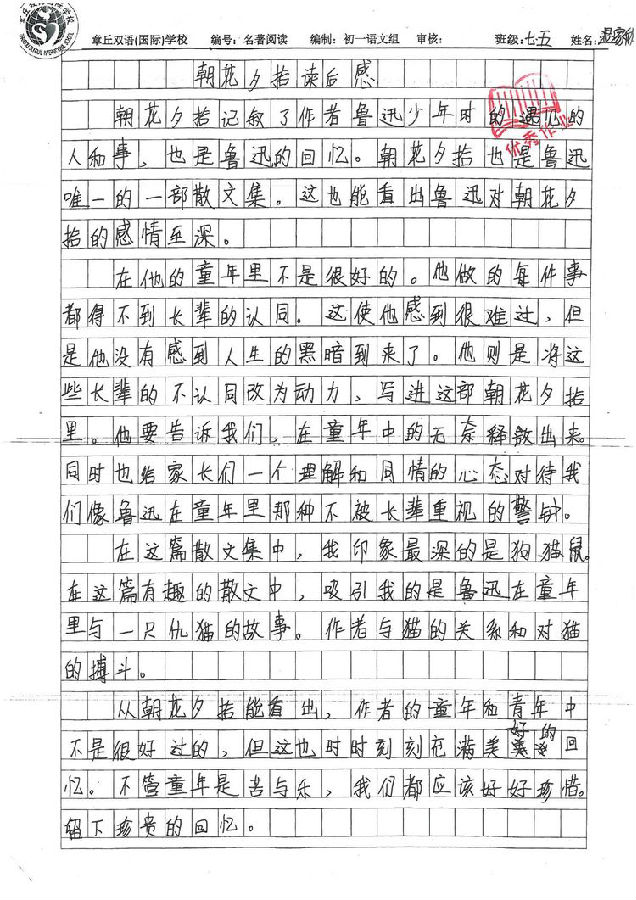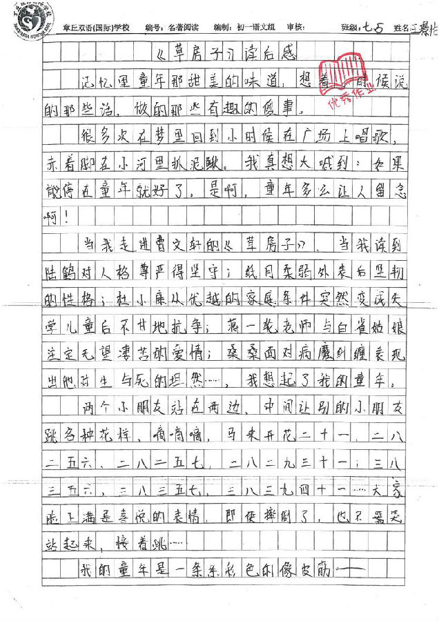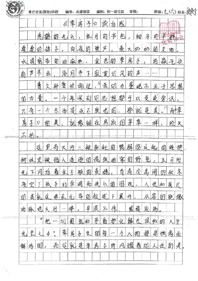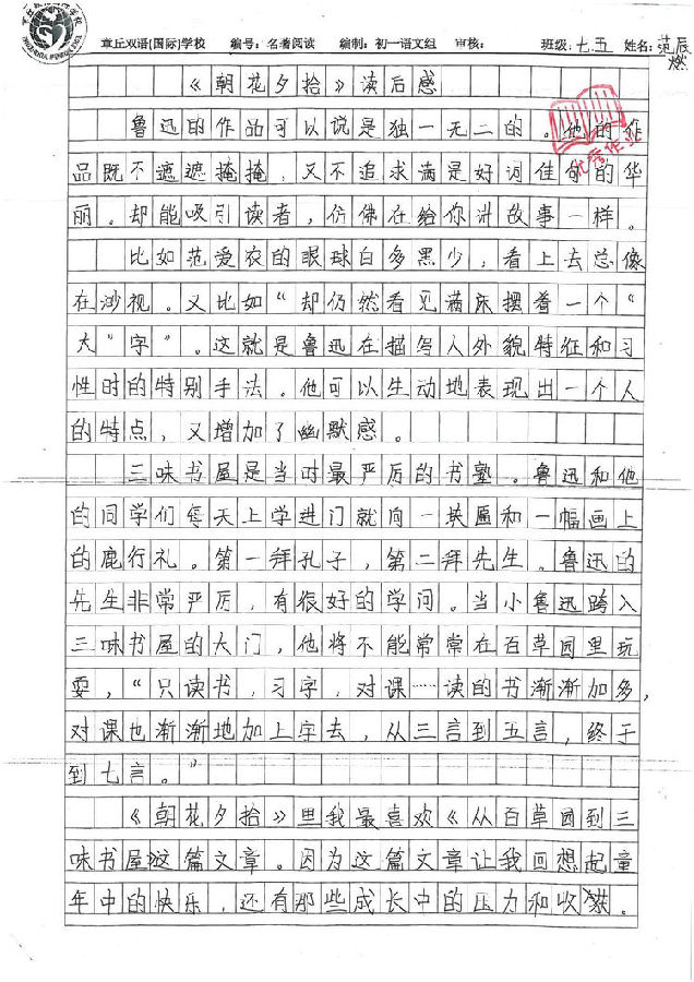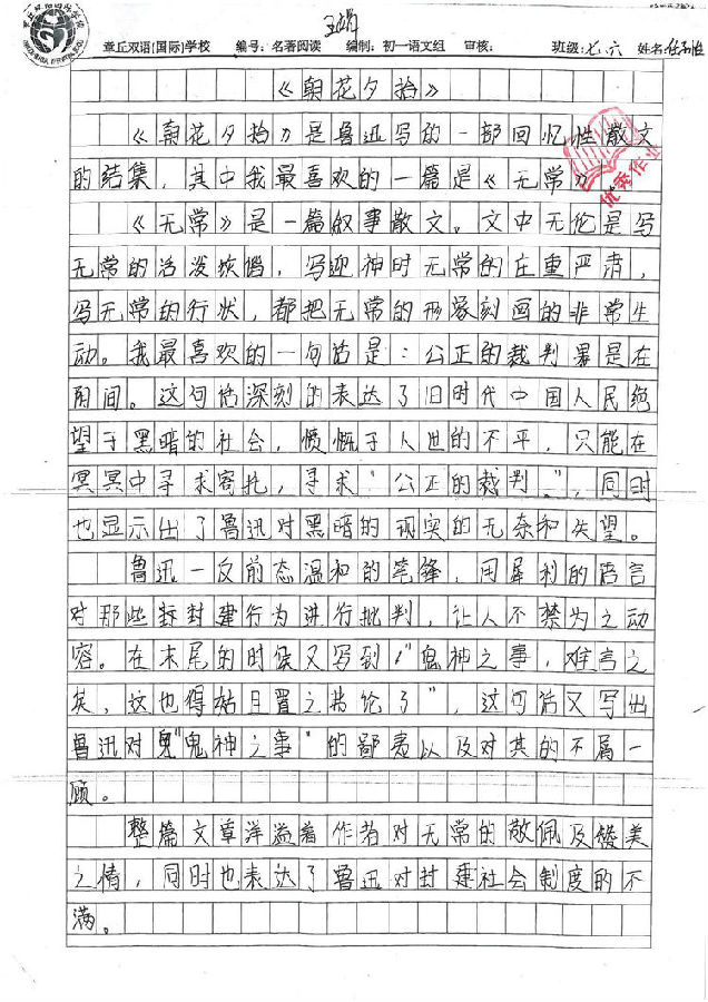 發布時間:2017-11-06七年級五、六班語文優秀作業展