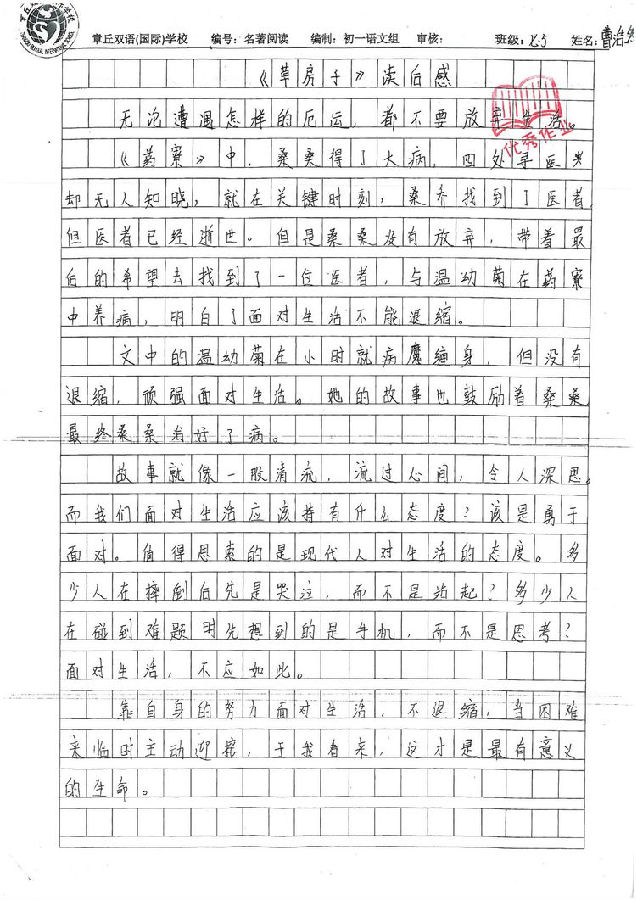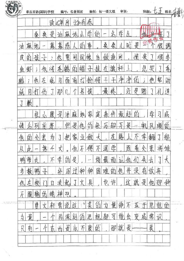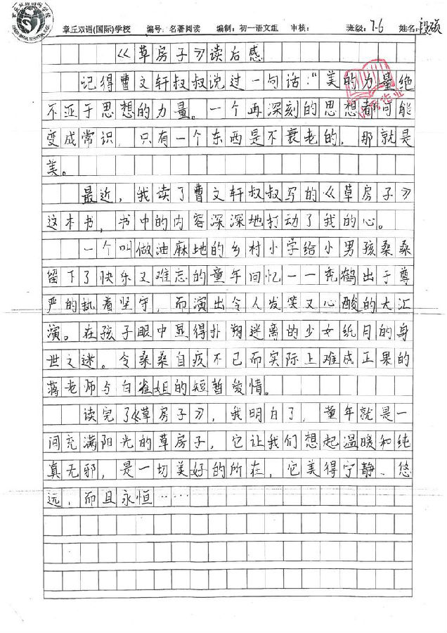 在上周末語文作業中(zhōng),七年級五班曹浩然、範辰燃、李夢竹、李豔芳、劉子涵、水馨、王璟怡、溫家欣,七年級六班段佳甯、段碩、管霈、龐佳禾、任子怡、徐鳴陽、張文玥,表現優異,特此嘉獎,以示鼓勵!