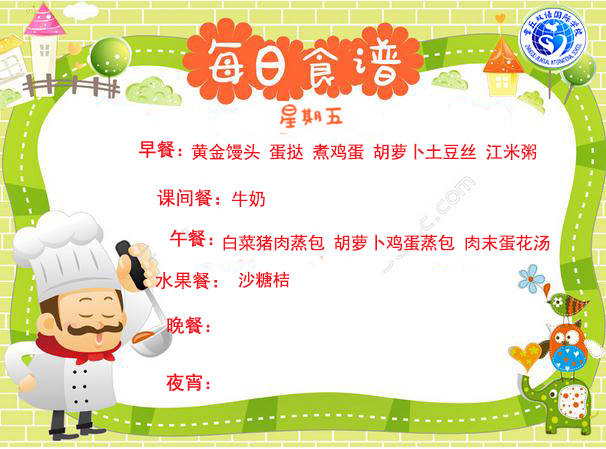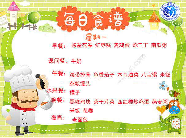 章丘雙語國際學校食堂2017.12.11-12.15食譜